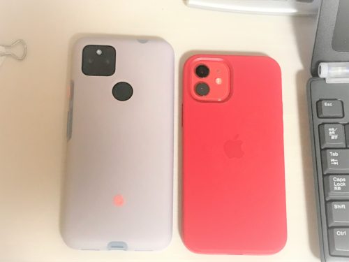 どんなケースを付けるかにもよるかもしれませんが、幅は気持ちPixel5aの方が大きいけど、そこまで気にならない感じです。高さは明らかに違いますね。