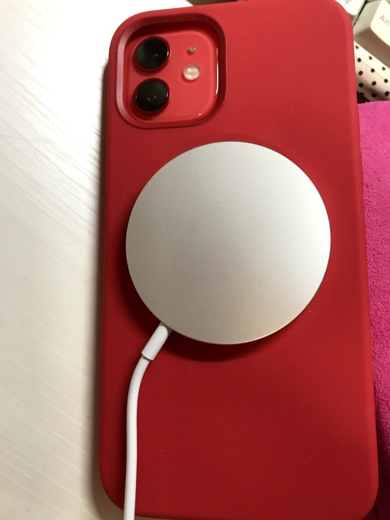 ワイヤレス充電器のMagSafeChargerの場合は磁石がついてるので、