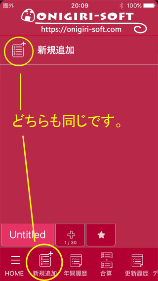 新規追加メニューボタンは2カ所ありますが、どちらも同じ機能です。