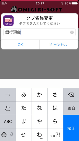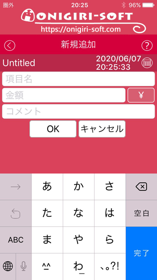 上から、項目名、金額、コメントです。コメントはメモ書きができるので入力してOKボタンで登録します。