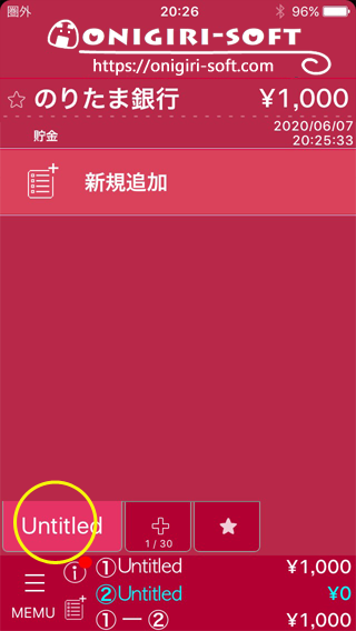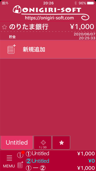 上記サンプルでは、項目名に「のりたま銀行」、金額に「1000」、コメントに「貯金」と入力しました。すると、下の合計欄にも金額が表示されました。