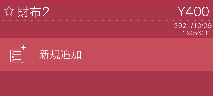 さらに、財布の中のタブにデータも入れたいので、新規追加で「財布2」という項目と金額「500円」も入れました。
