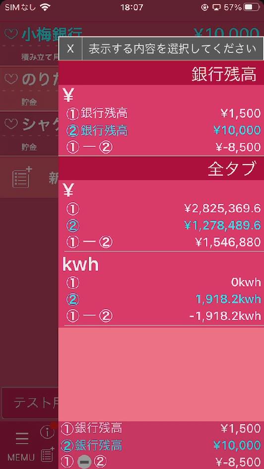 全部のタブ合計や各単位の合計も表示され選ぶと表示を切り替える事もできます。↓↓